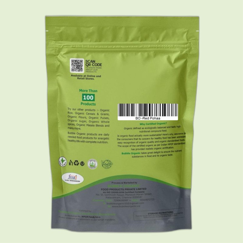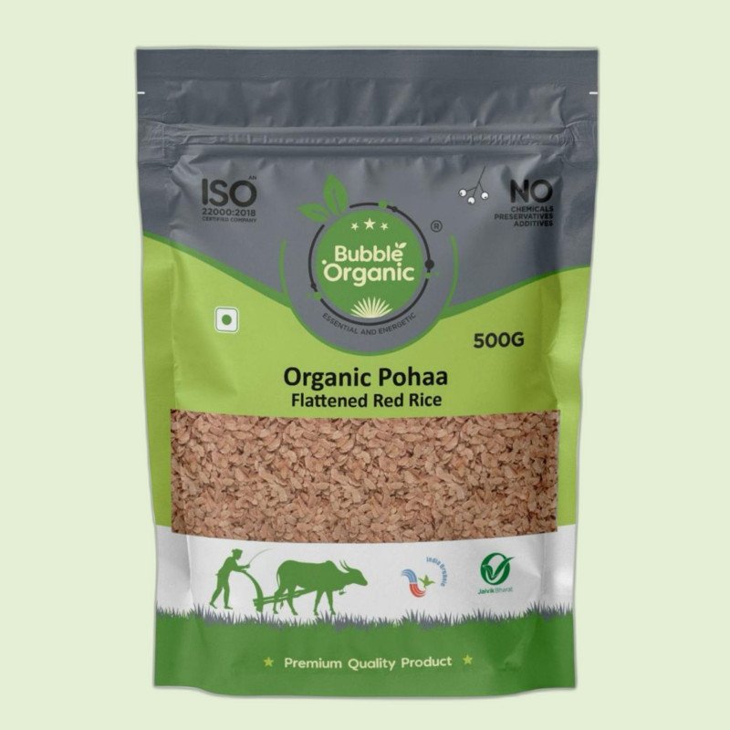 Bubble Organic Red poha, also known as red rice flakes, is essentially flattened rice derived from red rice. It boasts a rich nutritional profile, offering health benefits such as a higher iron content and easy digestibility. Red rice poha serves as a wholesome substitute for white rice flakes. It promotes health benefits include Good for Gut.