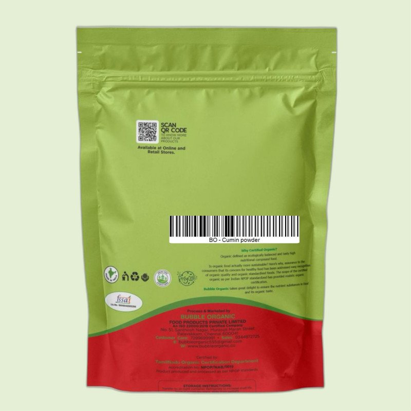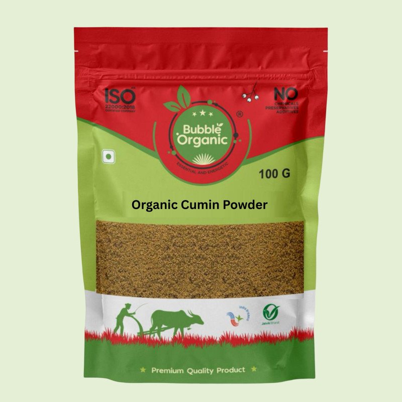 Bubble Organic Cumin powder, on the other hand, is derived from Cumin seeds that have undergone a meticulous process of removing their stalks, resulting in a flavourful, genuine, and fragrant powder. Cumin, being a small grain, is packed with an abundance of taste and aroma that infuses into the food during cooking, enhancing its appeal. This widely utilized spice effortlessly imparts a delectable flavour to various dishes.